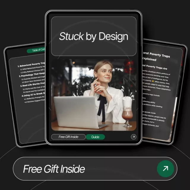 Unlike other financial guides, Stuck by Design goes beyond traditional advice by addressing the root psychological causes of poverty — not just the surface-level behaviors. By focusing on behavioral poverty traps and using AI to guide your reflection and decision-making, this guide offers a personalized approach that you won’t find in standard financial advice books or courses.